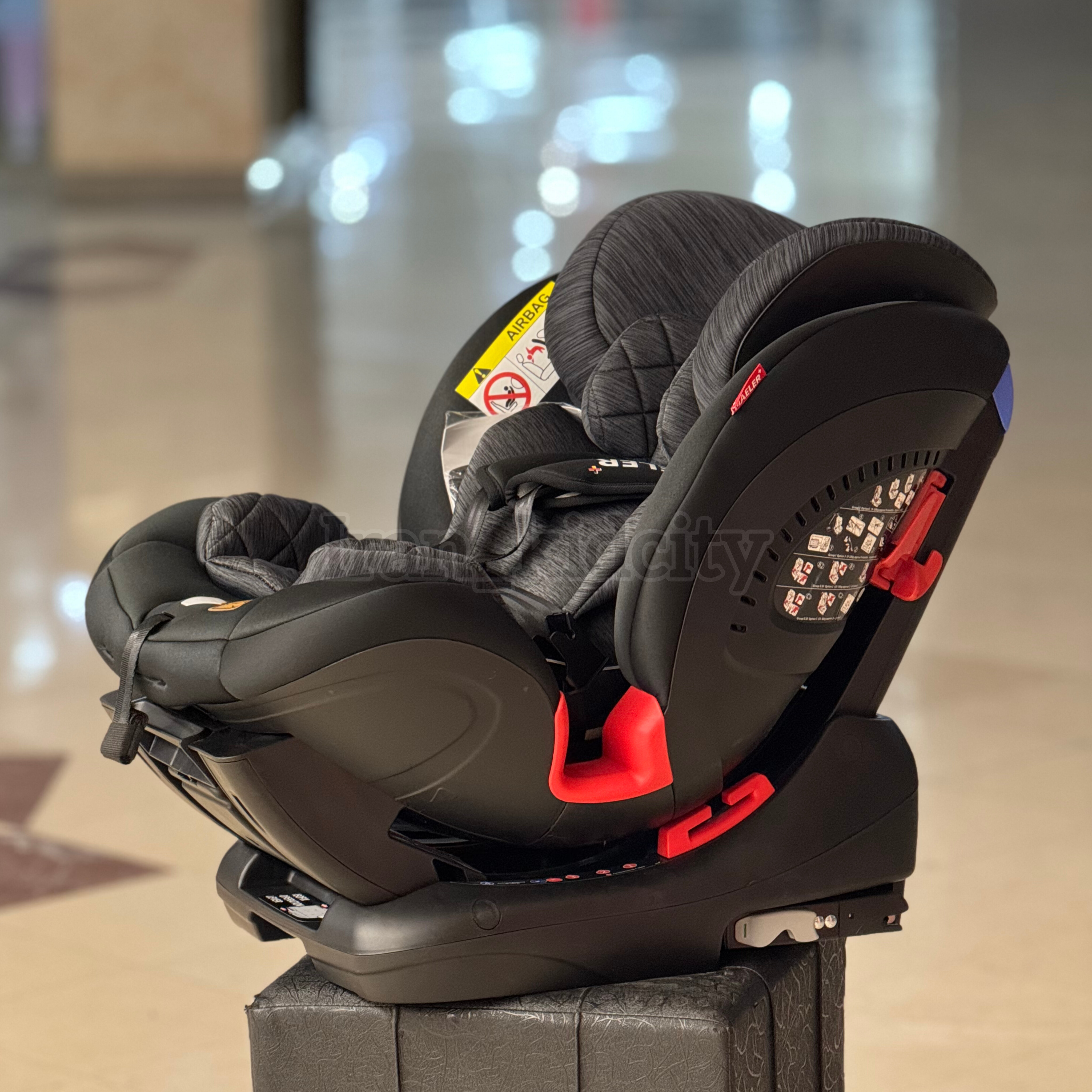 مناسب از بدو تولد تا ۱۲ سالگی ، تحمل وزن تا 36 کیلوگرم ، حالت خواب ۱۶۵ درجه ای (خواب کامل) ، استفاده از یونولیت ضربه گیر داخل کل صندلی ، سیستم ISOFIX برای امنیت بیشتر و نصب آسانتر صندلی ماشین ، سیستم کیوفیکس (کمربند سوم به جهت ایمنی بیشتر) ، دارای پد دوبل بسیار باکیفیت